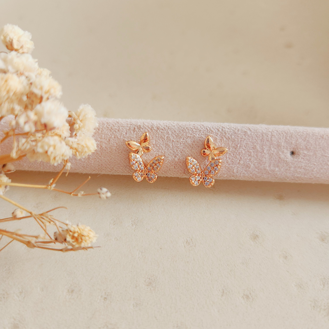 Aretes de acero bañado en oro. Tiene aplicación de circones blancos.