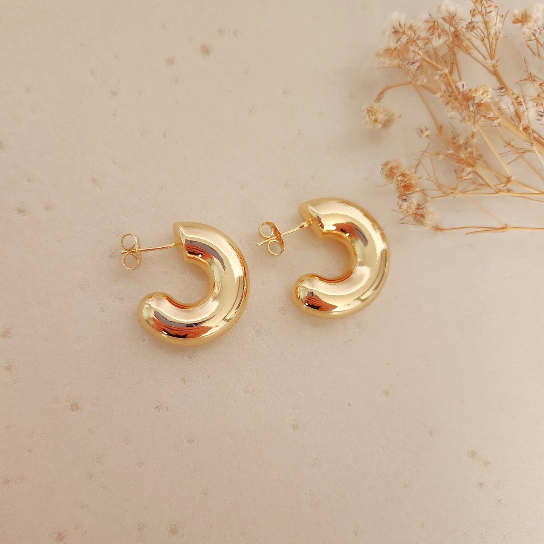 Descubre los Aretes Redondos Dorados, un diseño atemporal que aporta elegancia y estilo a tu look. Perfectos para cualquier ocasión.