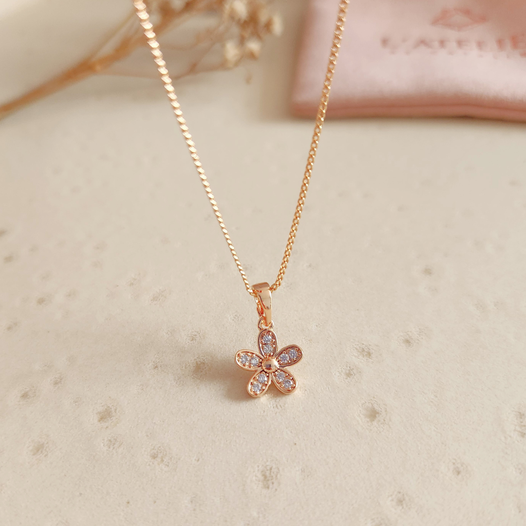 Collar con dije de flor y circones con un toque brillante y sofisticado. ¡El regalo perfecto!