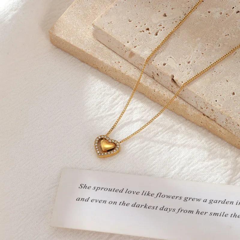Collar con dije de corazón pasante con aplicación de circones.