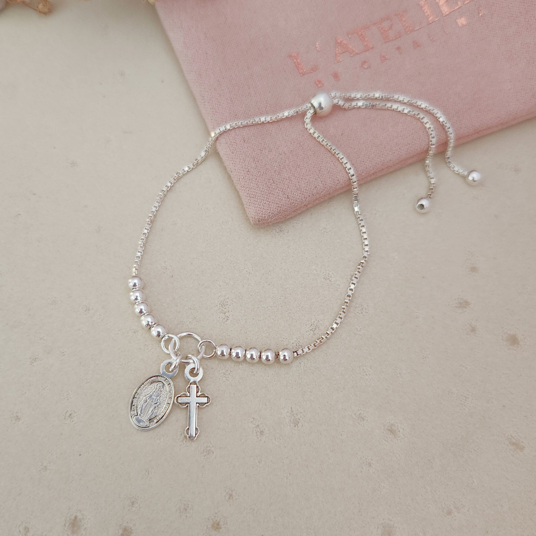 Pulsera Regulable Virgen Cruz - Colección Plata